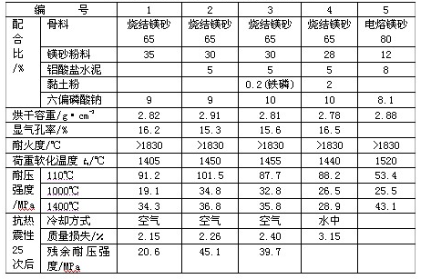 鎂砂耐火澆注料性能:
