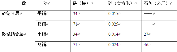 普通粘土磚面層每平方米用料參考表